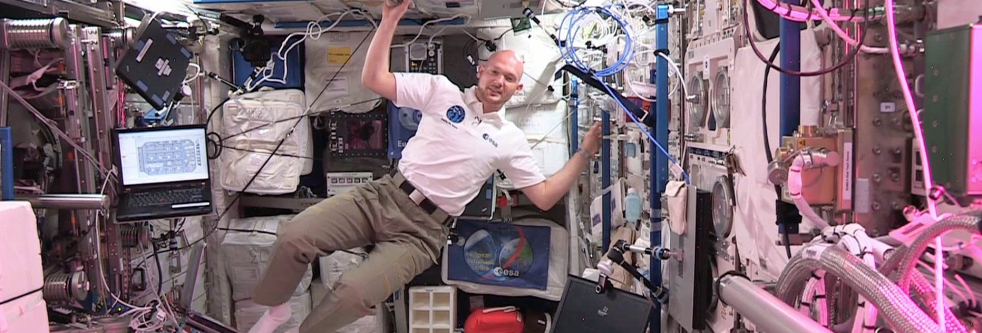Unter diesem Motto veranstaltet der Regionalverband mit zahlreichen Partnern am 22. Oktober 2014 den EURO SPACE DAY im Saarbrücker Schloss. Im Zentrum steht die bundesweit einmalige Kombination aus öffentlicher Video-Live-Konferenz zu dem deutschen Astronauten Alexander Gerst in die Internationale Raumstation und einer Unternehmensmesse. Der grenzüberschreitende Charakter dieser Veranstaltung hat die European Space Agency (ESA) dazu bewogen, Saarbrücken die exklusive Gelegenheit für diesen ISS Live Video Call zu bieten. (Foto: ESA: Astronaut Alexander Gerst im Columbus-Forschungslabor der ISS-Raumstation.)
