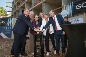 Sie befinden sich hier: Startseite • 234 neue Wohnplätze für Studierende auf dem Saarbrücker Unicampus – mit der WOGE Saar • Richtfest Studentenwohnhaus