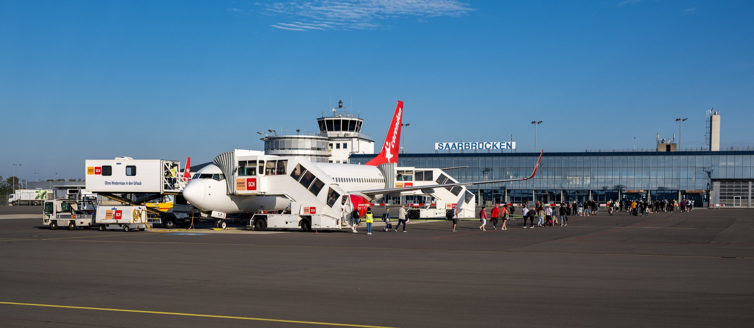 Corendon Airline auf dem Vorfeld am Flughafen Saarbrücken
