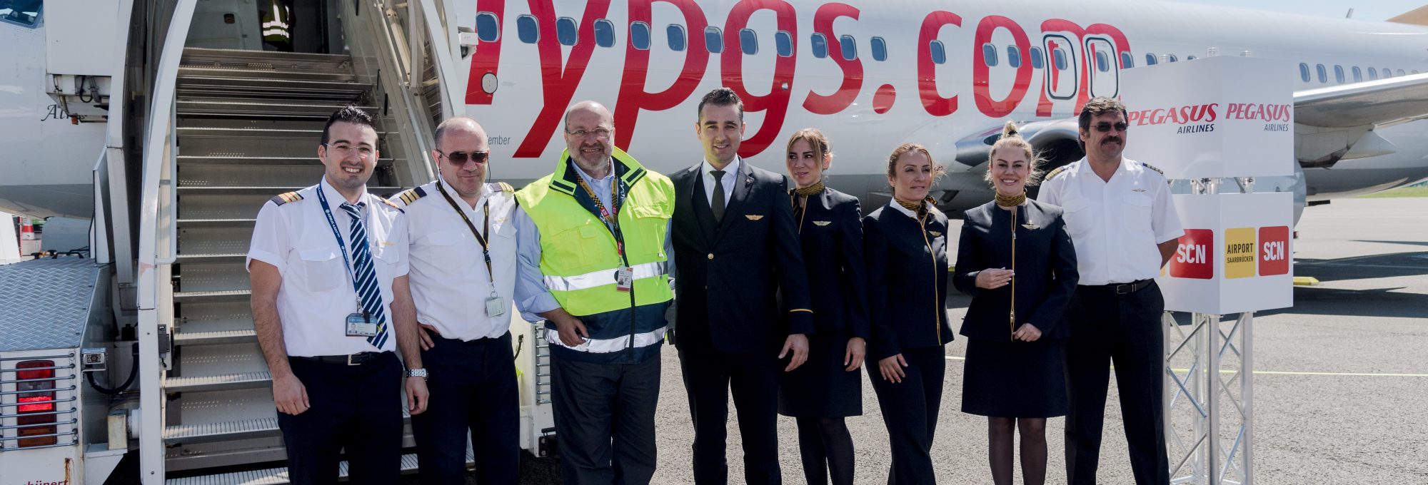A partir d´aujourd´hui, lundi 22 mai, Pegasus, nouvelle compagnie aérienne au départ de Sarrebruck, desservira Antalya la métropole turque. A 12h30, le Boeing 737-800 qui affichait complet, s´est envolé pour la Riviera turque. Le vol entrant a eu droit à la cérémonie du baptême d´eau par nos pompiers. Les membres de l ´équipage sont accueillis par Thomas Schuck, Directeur de l´aéroport. Les passagers se sont vus remettre du nougat turque par le personnel de l´aéroport.